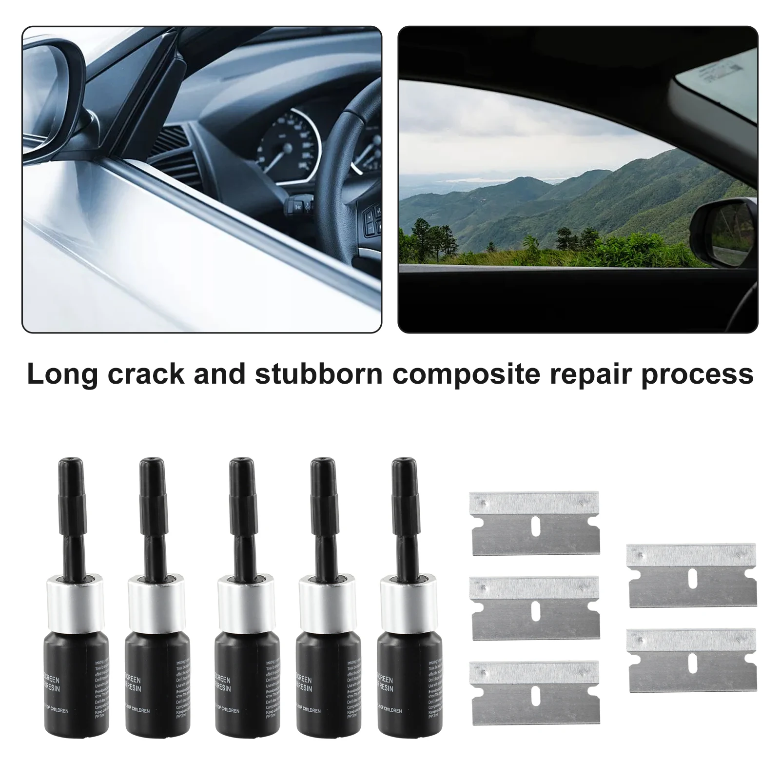 5PCS Automotive Glass Nano Repair Fluid Car Windshield Resin Crack Tool Kit Universal Car Windscreen Glass Scratch Crack Restore