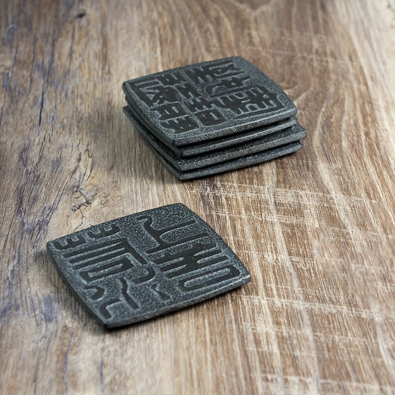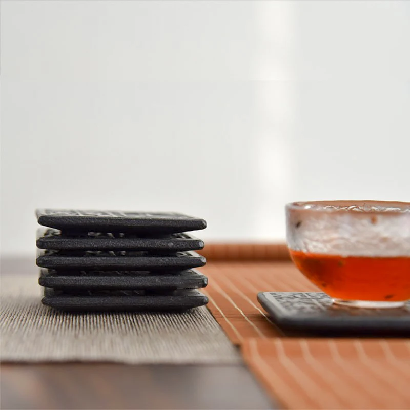 Cup Mat Coaster Teapot Teacup Nature Stone Pad Coffee Placemat Home Decor Durable Heat Resistant Black Square Culture Teaset Mat